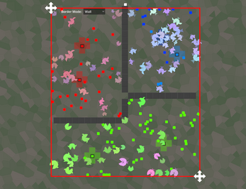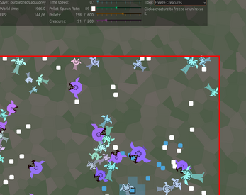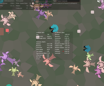 The creatures' AI consists of a single perceptron that iterates observes a different object each frame to decide whether to target, run away, or ignore it.